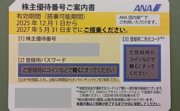 | ANA株主優待券 (有効期限2027/5/31) | 1枚200円買取 |