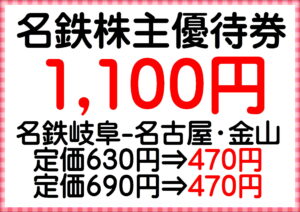 名鉄株主優待券地域最安値販売1枚1,100円&地域最高値買取1枚900円 在庫沢山有ります