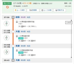 岐阜⇔大阪 在来線の乗り継ぎ上手く行けば2時間40分程で到着します