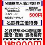 2021年2月10日 / 最終更新日 : 2021年3月2日 okadaeiji 最新販売情報 名鉄株主優待券を3月末まで1枚900円にてお値打ちに販売しております 名鉄株主優待券を格安販売しております 名鉄岐阜・笠松⇔中部国際空港・豊橋・豊川稲荷・蒲郡・内海等でご利用頂ければ大変お得に乗車できます 340円~390円位通常定価よりお値打ちに名鉄🚋に乗れますよ 販売価格 1枚 900 […]