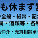 2024年5月3日 / 最終更新日 : 2024年5月3日 okadaeiji 遺品整理 GWも休まず営業してます。コイン全般・紙幣・記念切手・貴金属・酒類・各種金券・不動産仲介・売買等相談承ります ゴールデンウィークも休まず営業しております 朝9時から夕方17時まで営業し ております ゴールデンウィーク明け朝9時半から夕方の6時まで営業しております 当店では貴金属昔のコイン紙幣・小判等関係何でも買い取りします お酒 […]
